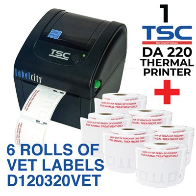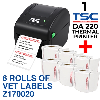 TSC DA220 Bundle with 6 Rolls of D120320VET labels